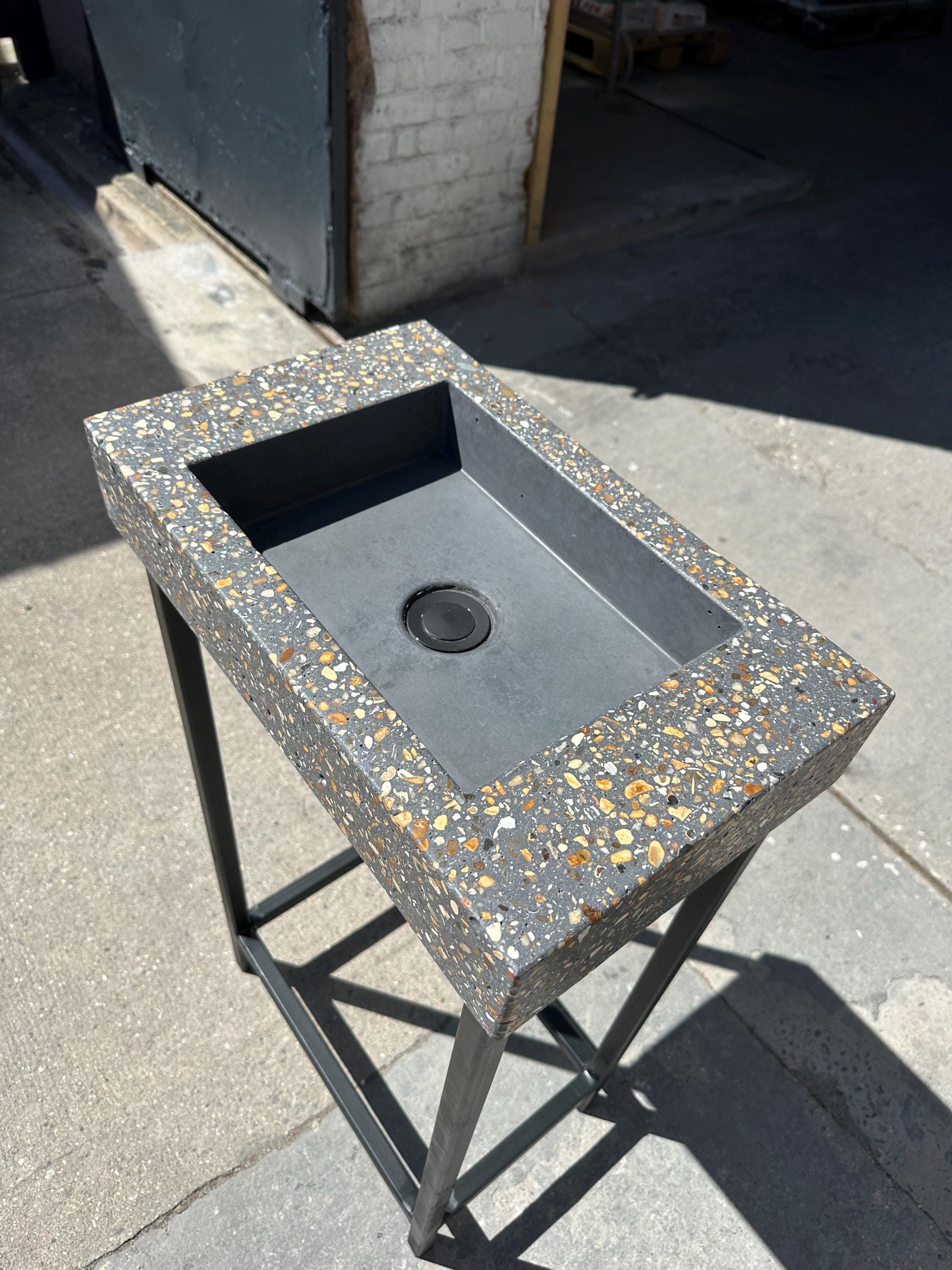 Each terrazzo sink is individually handmade, meaning no two pieces are ever the same. The sealed finish ensures the basin is water-resistant, easy to maintain, and highly durable, making it as practical as it is beautiful.