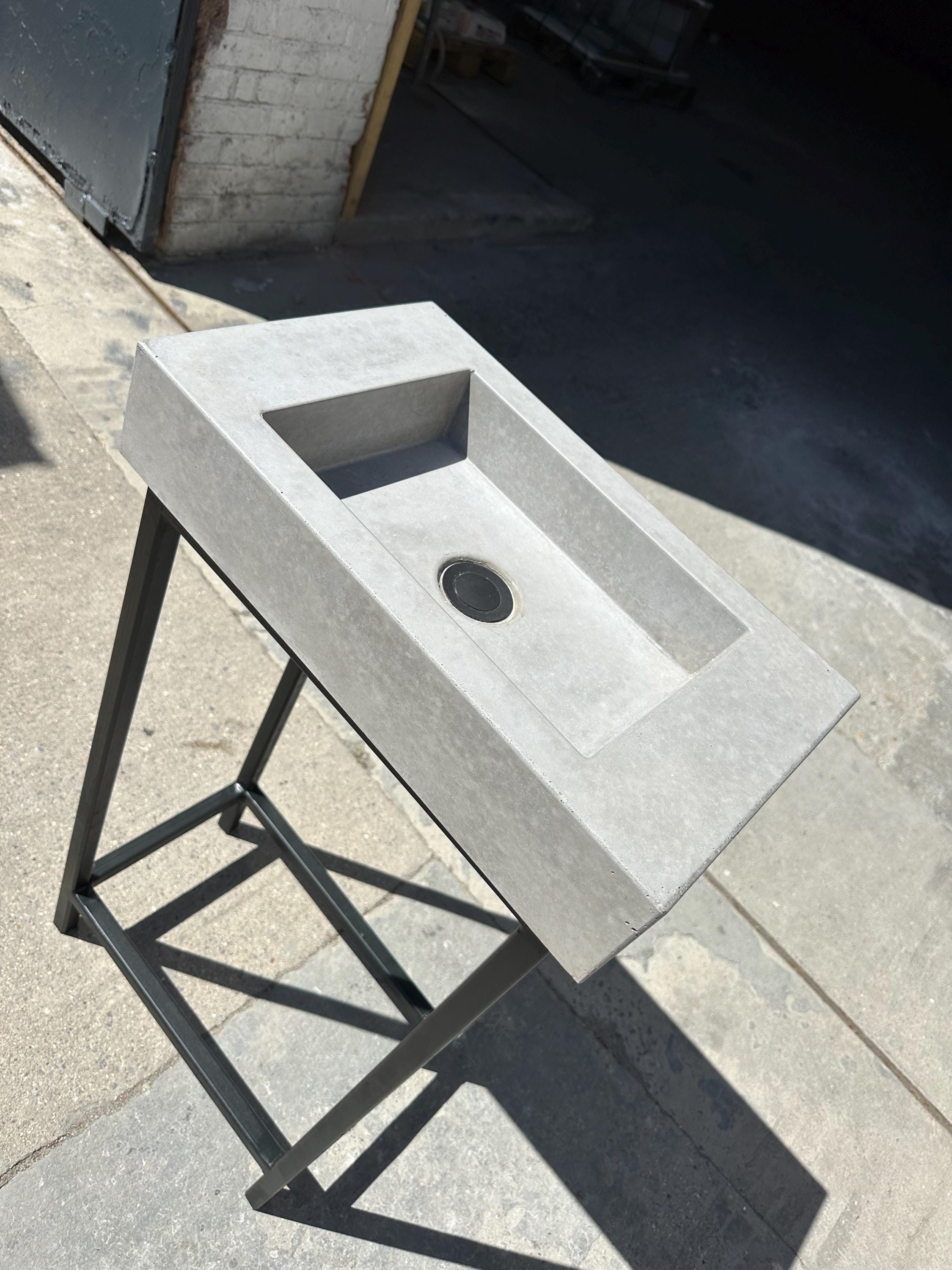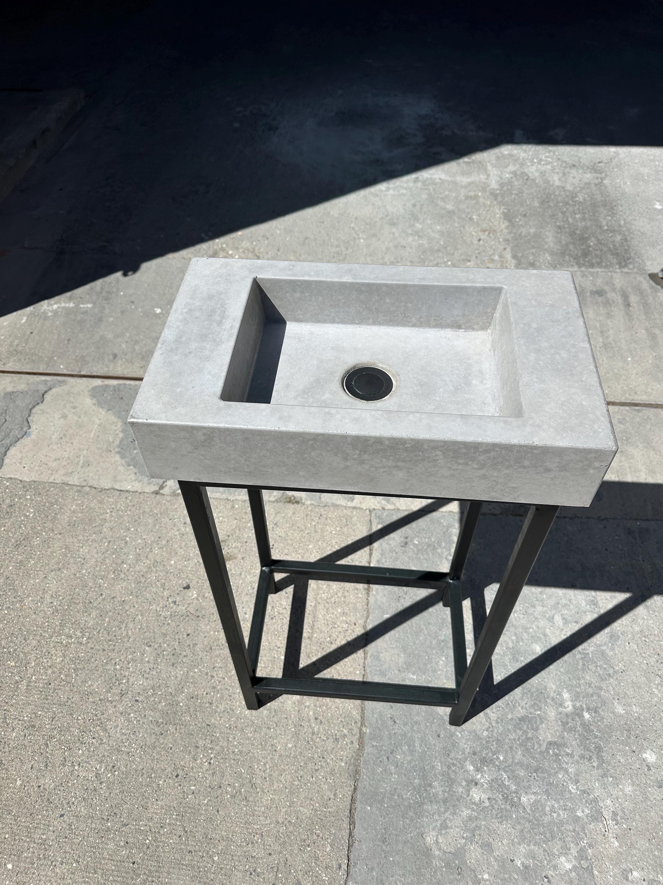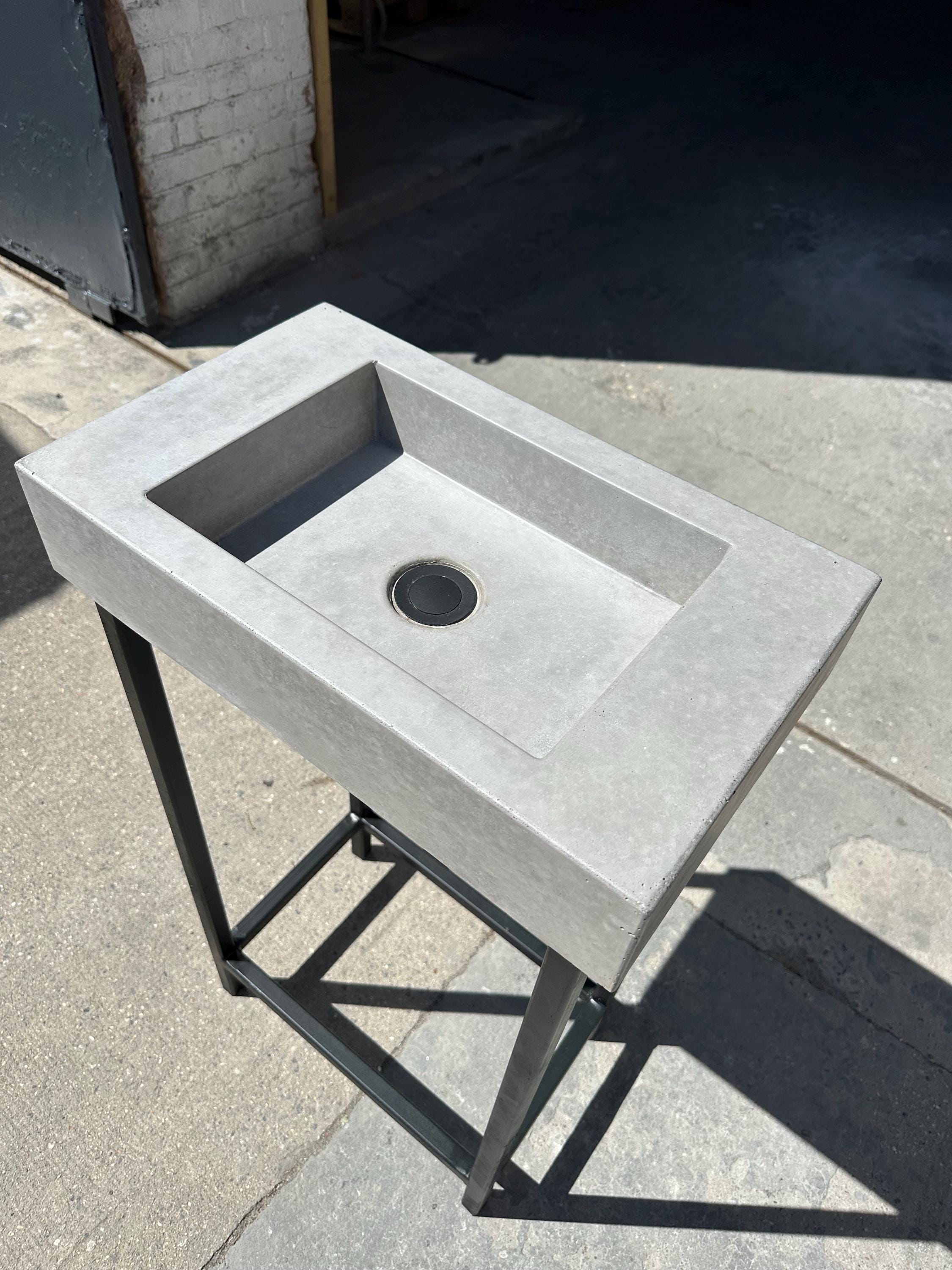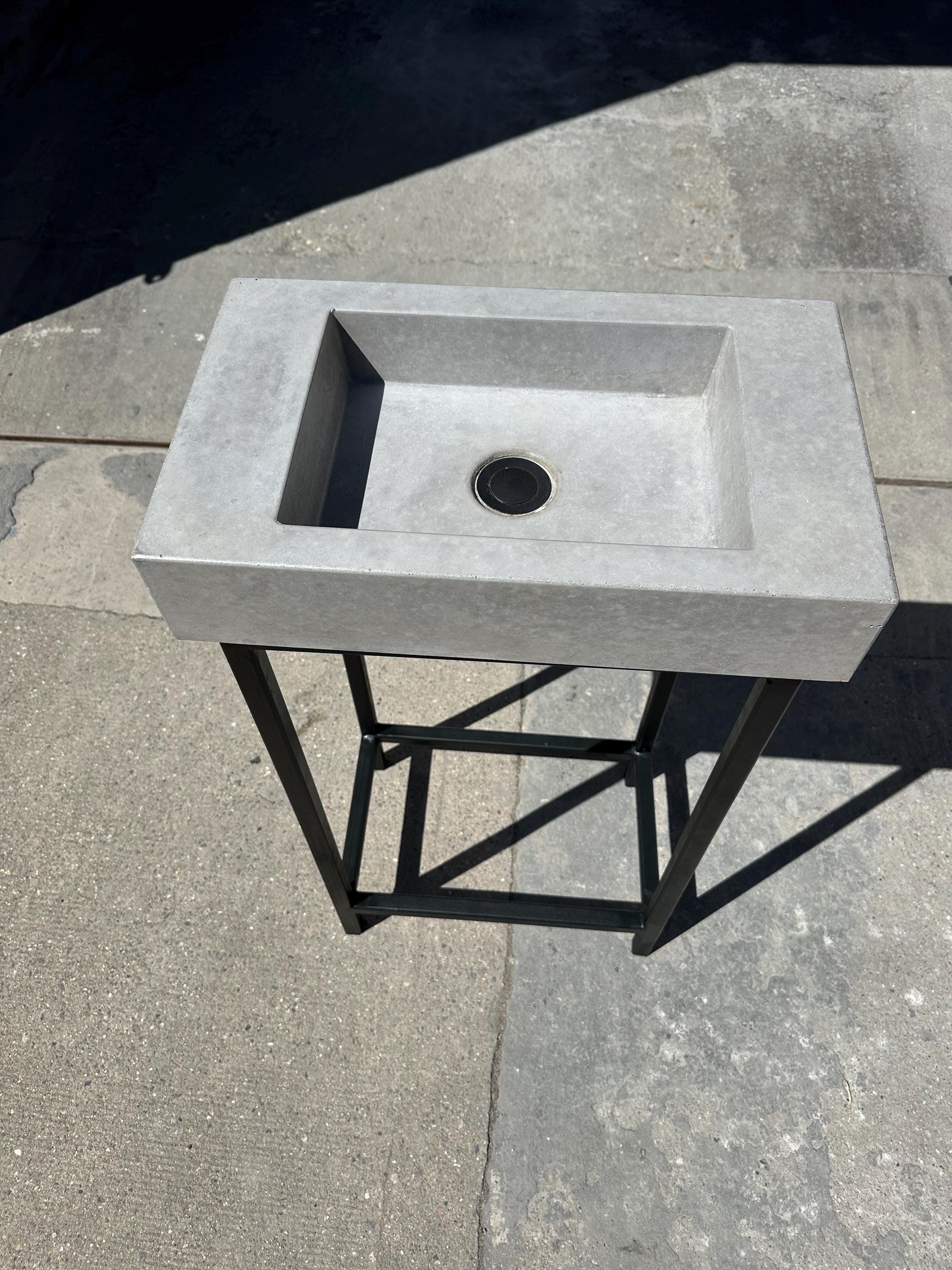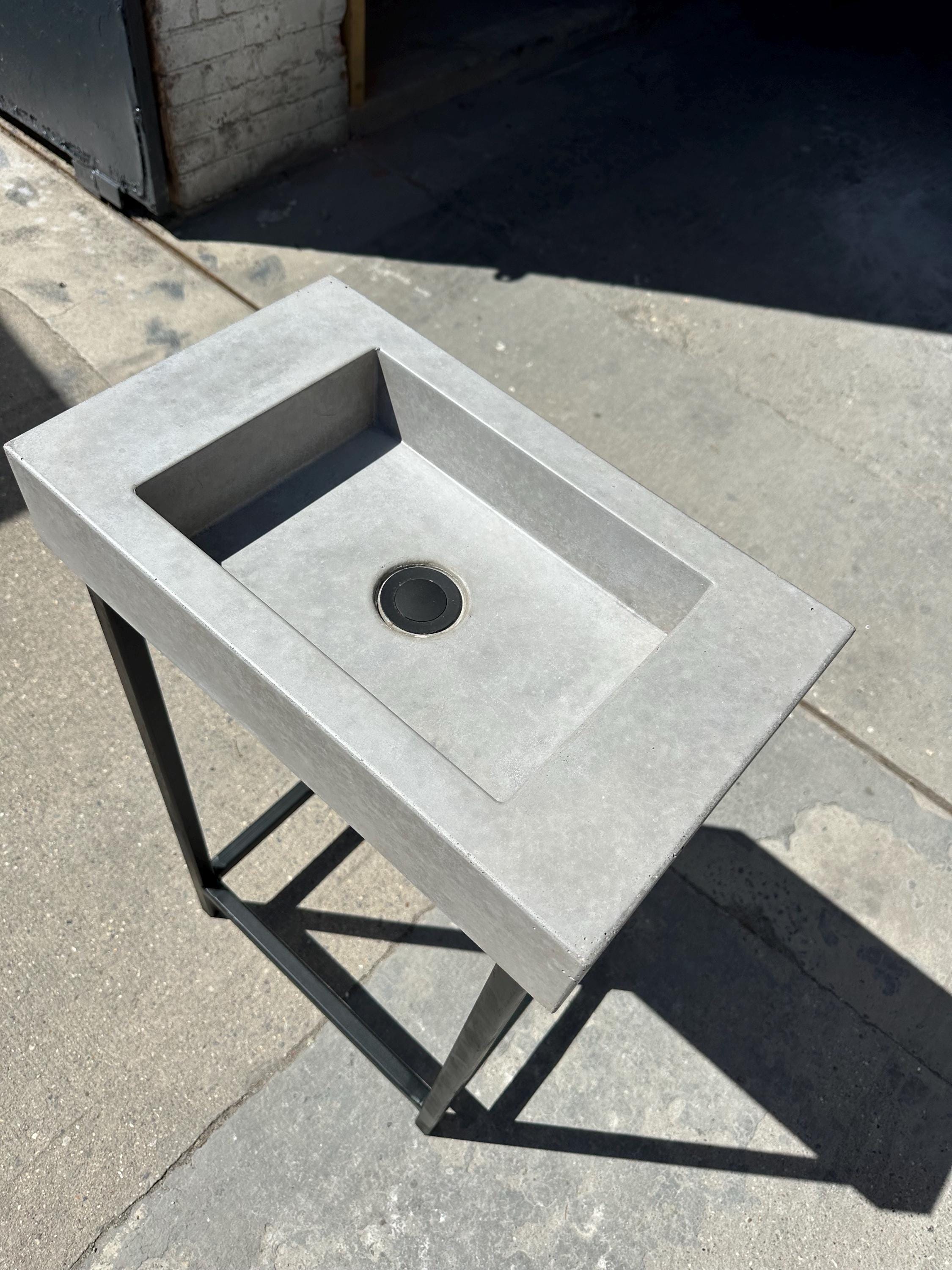 • Handmade black terrazzo concrete sink with matching frame