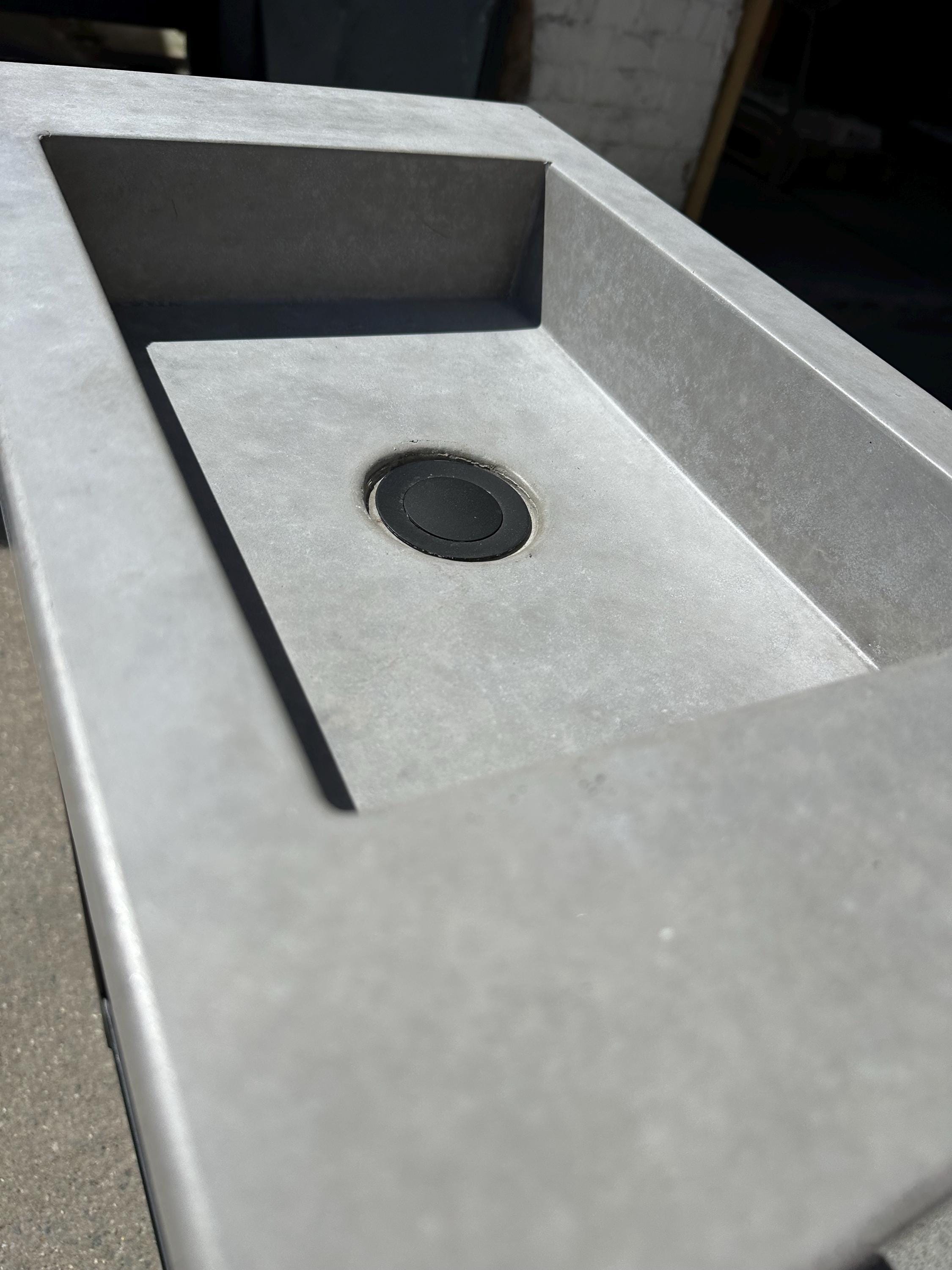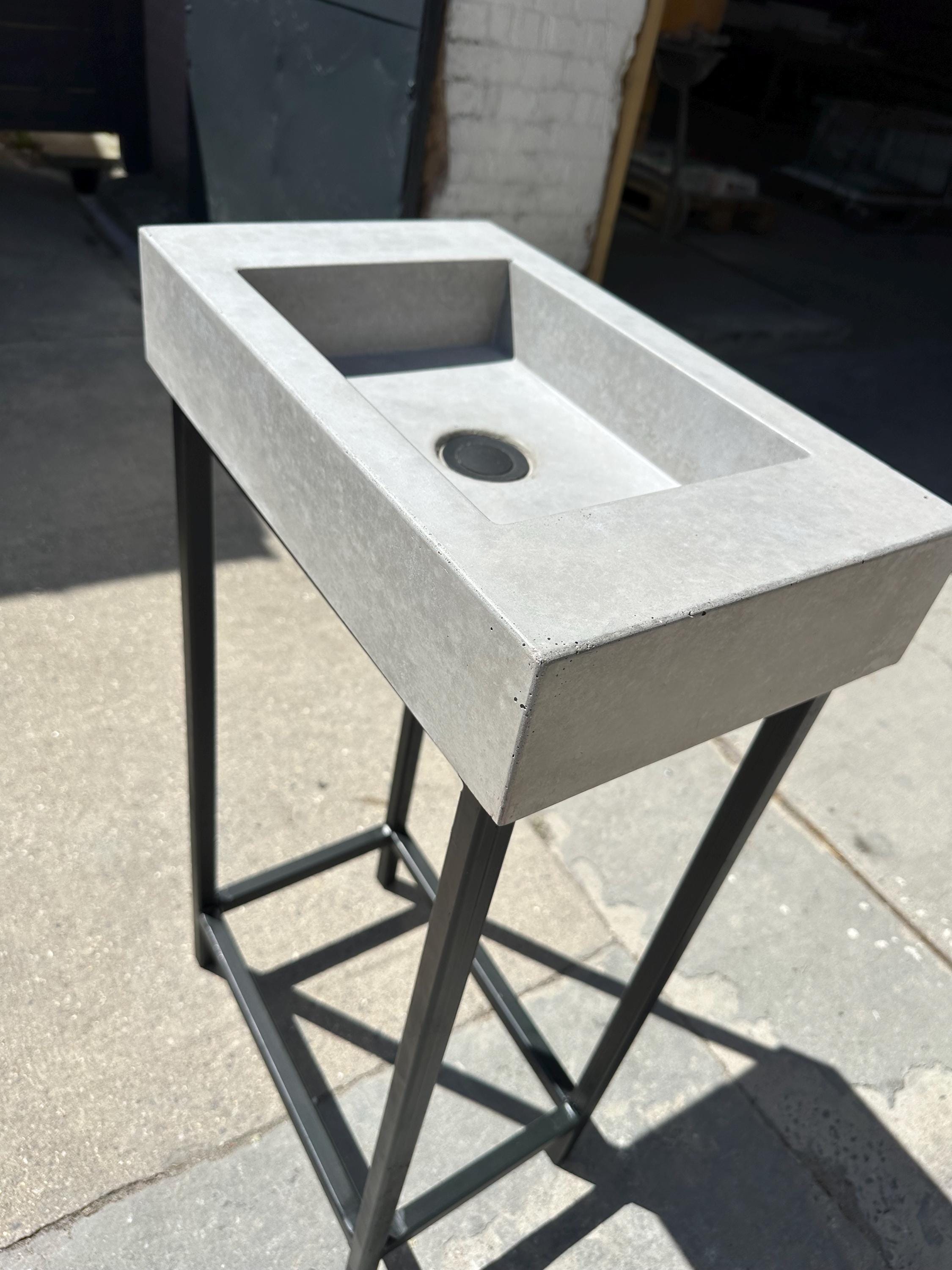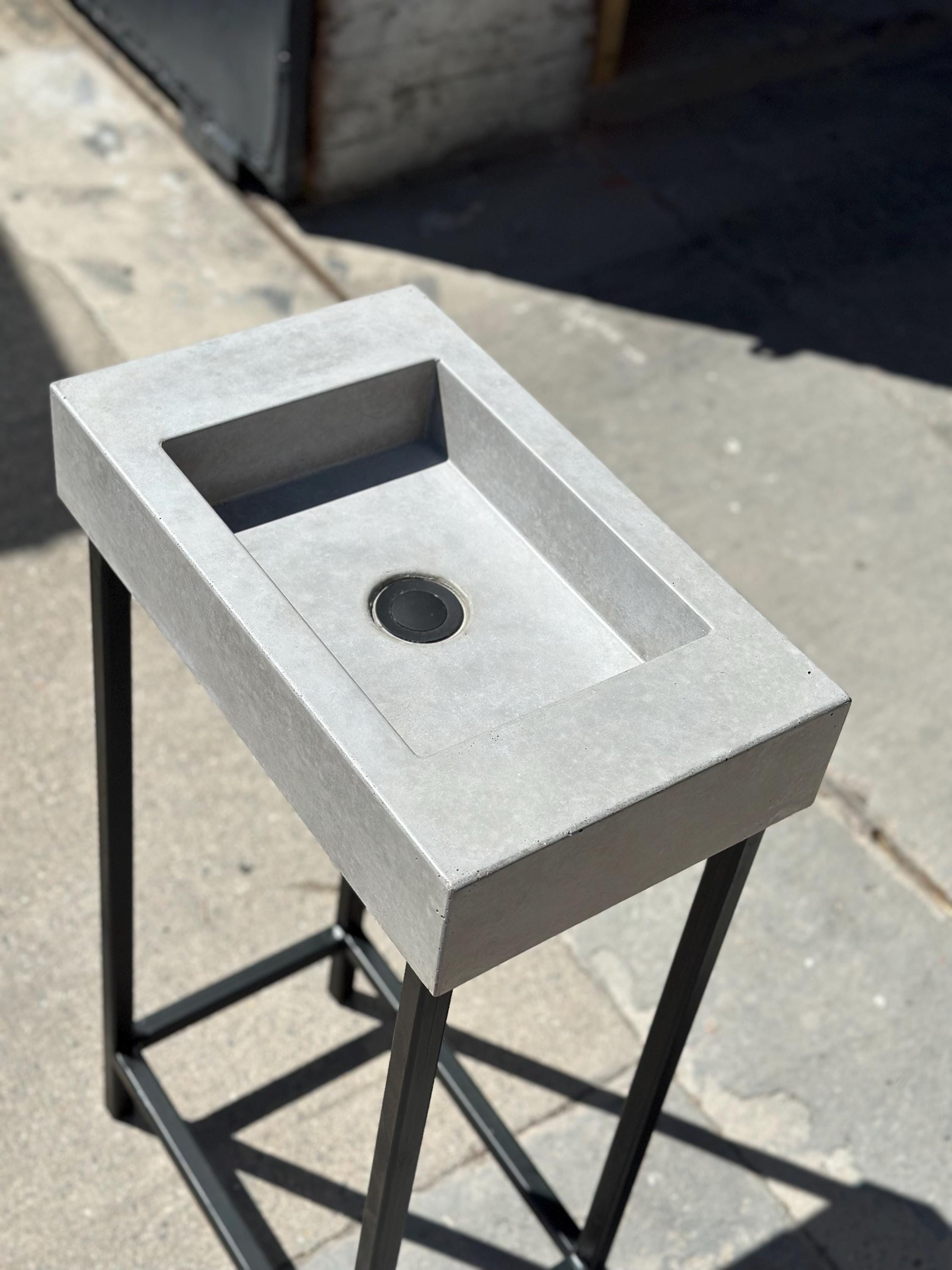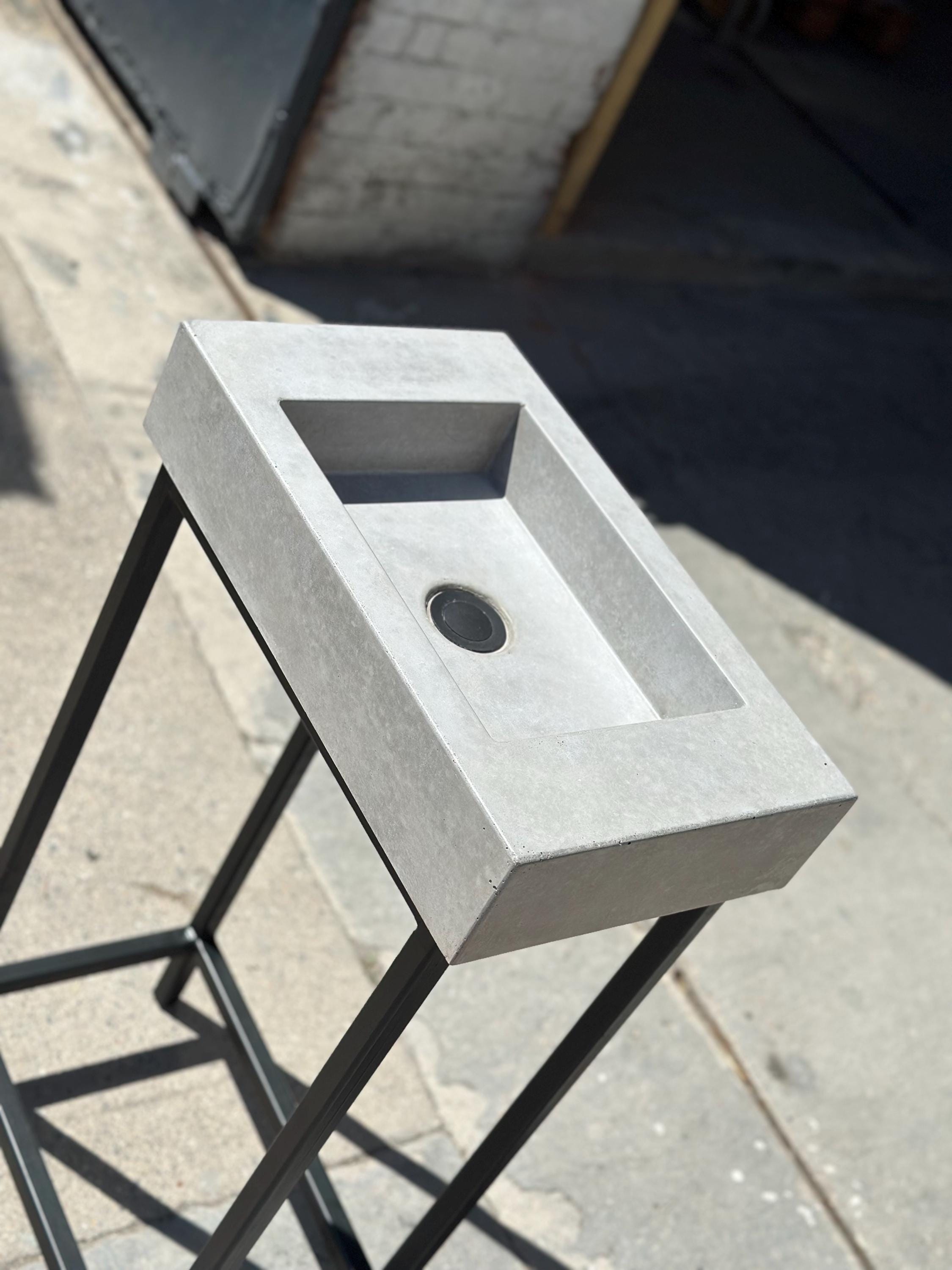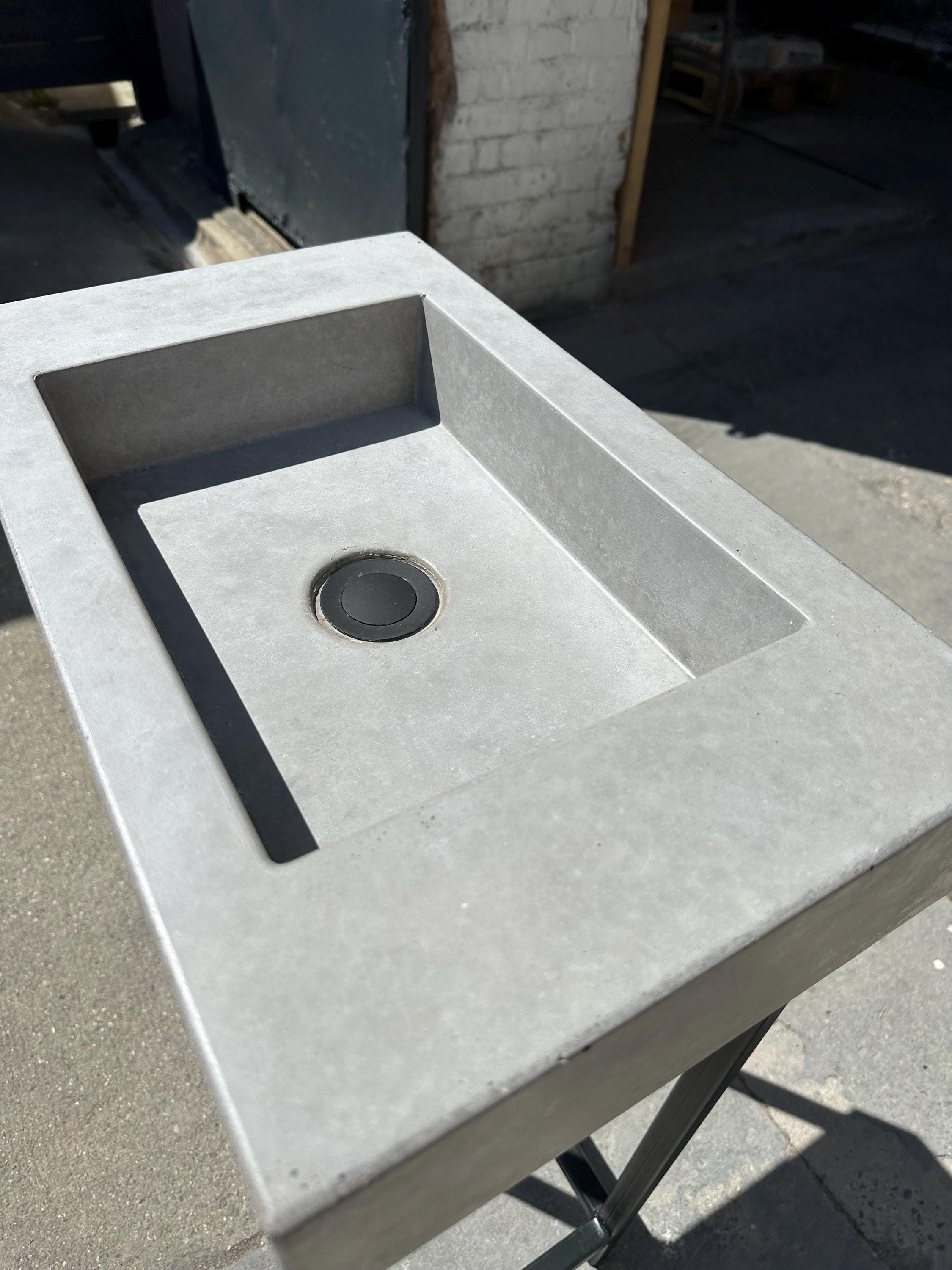 • Handmade black terrazzo concrete sink with matching frame