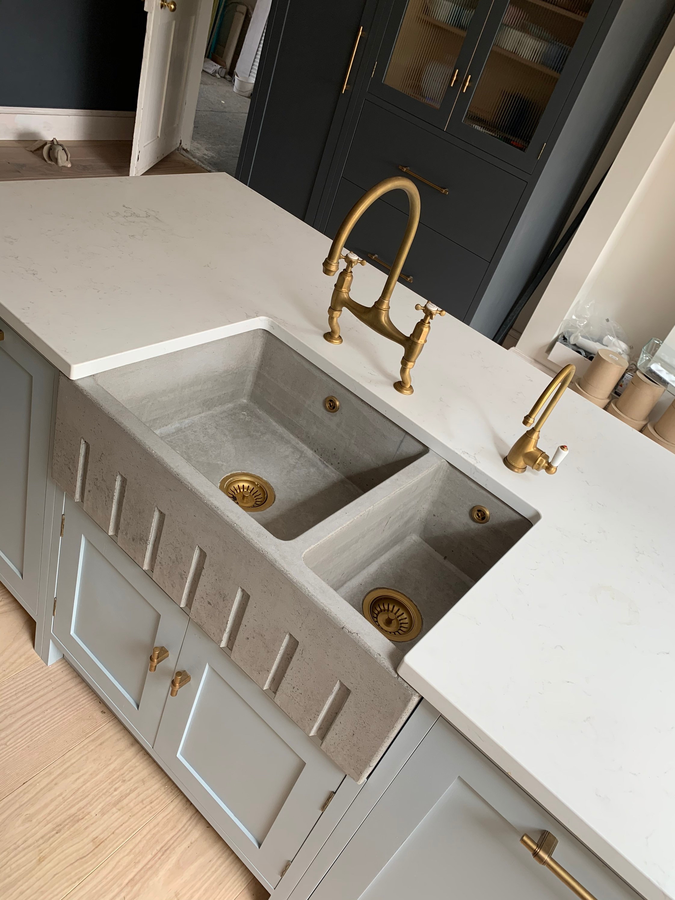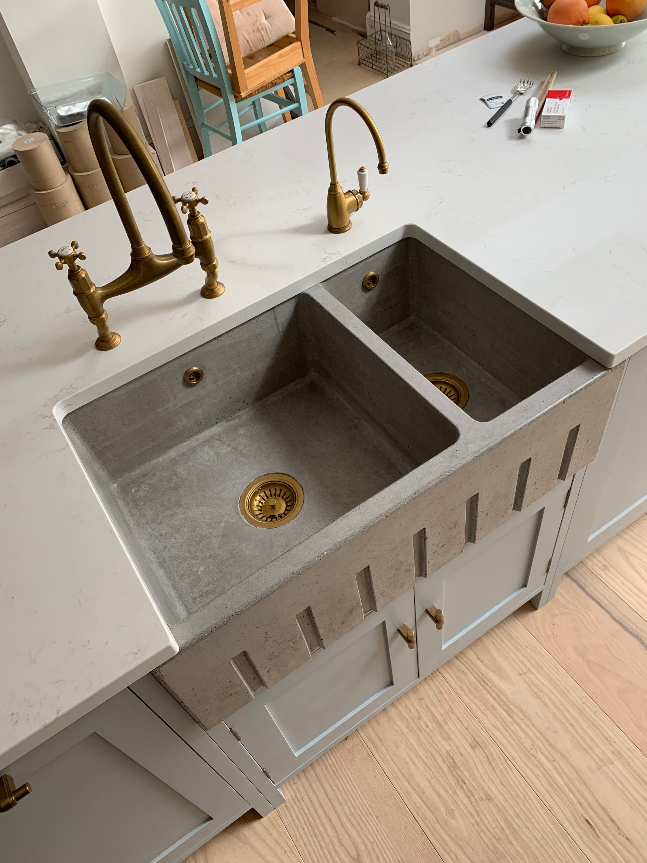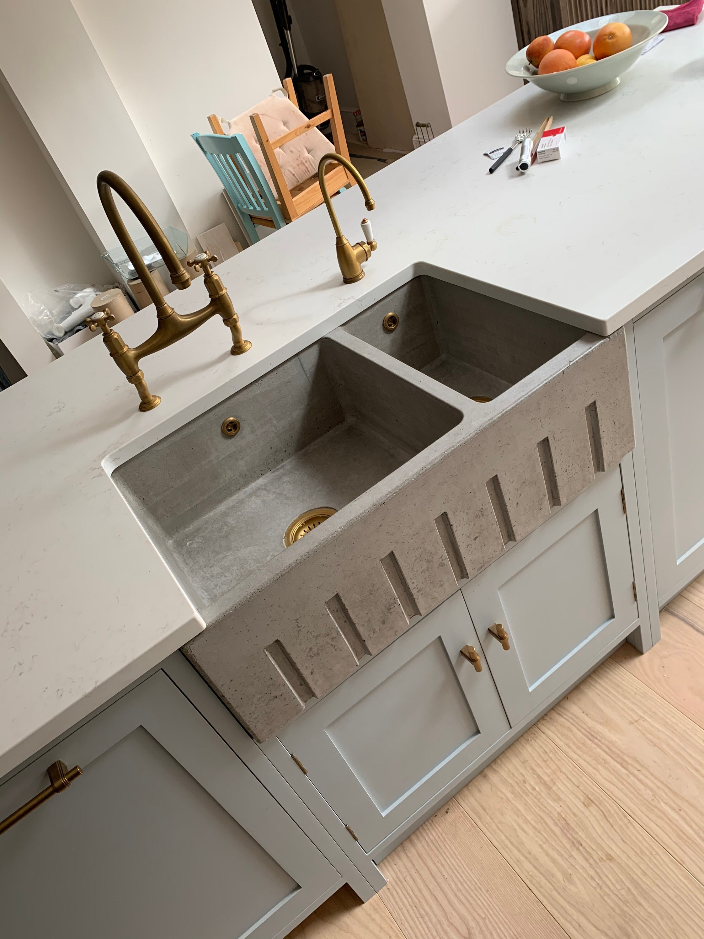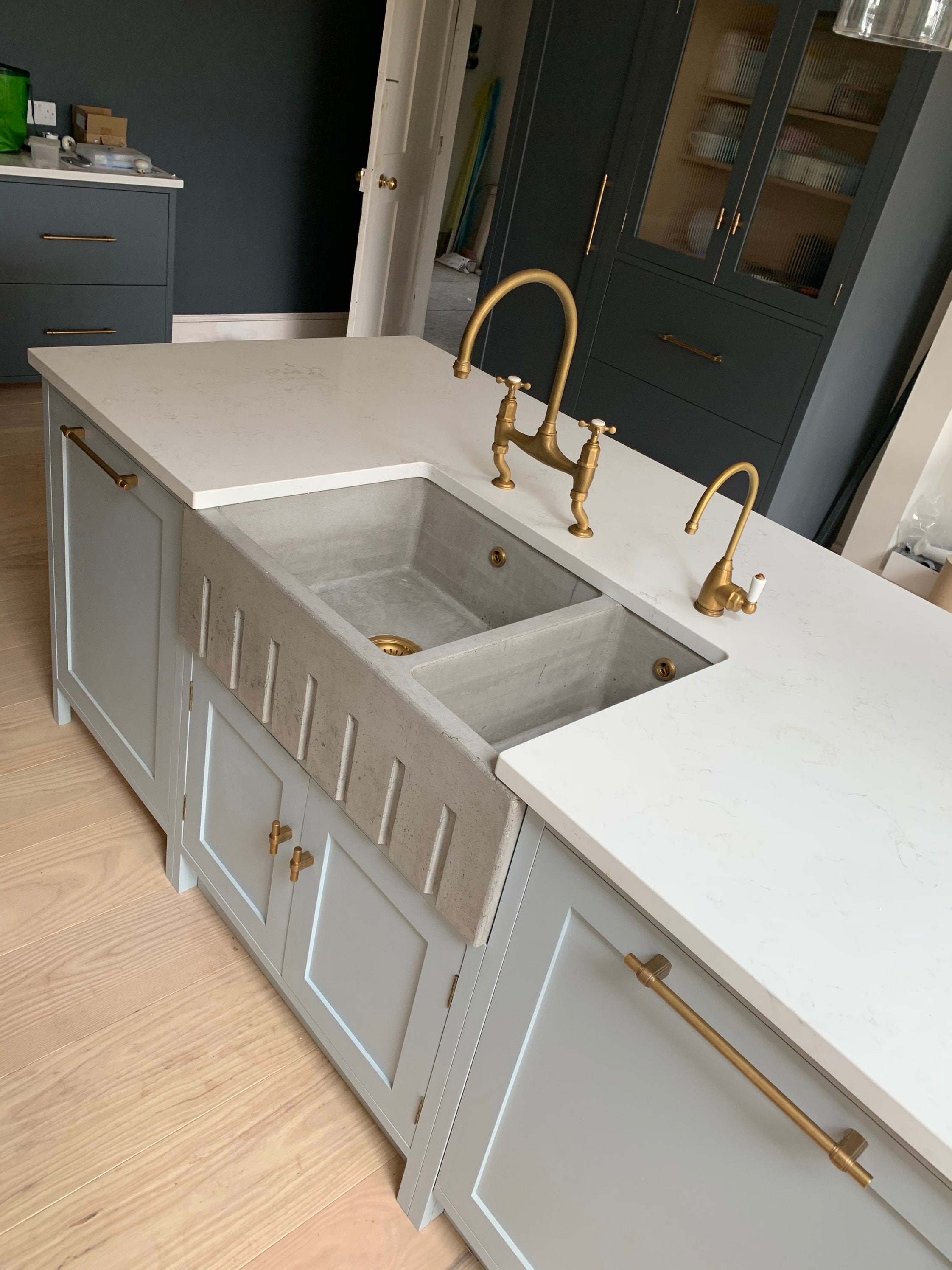 This is a beautiful Belfast sink from Morris Concrete Designs. It’s naturally poured concrete gives it a solid robust look but with all the charm and delicacy a family sink should have.